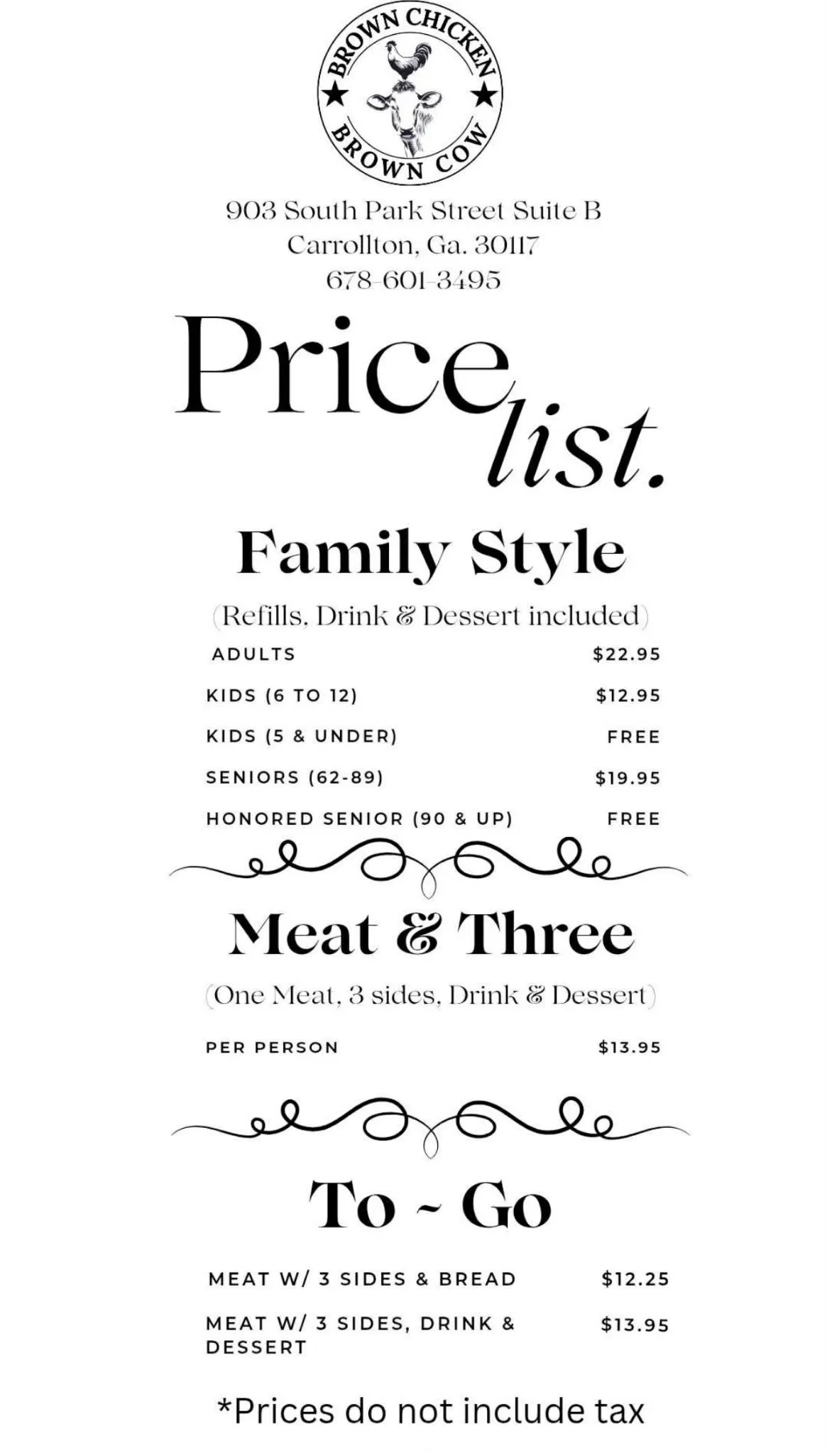 At Brown Chicken Brown Cow, we will be serving our fresh daily menu family style, which means everything is brought to your table on a lazy susan for sharing a meal with your family and friends. Our meals are made from simple, fresh ingredients and our menu will be different each day. Each time you visit us, you will be treated with excellent service of a home cooked meal.